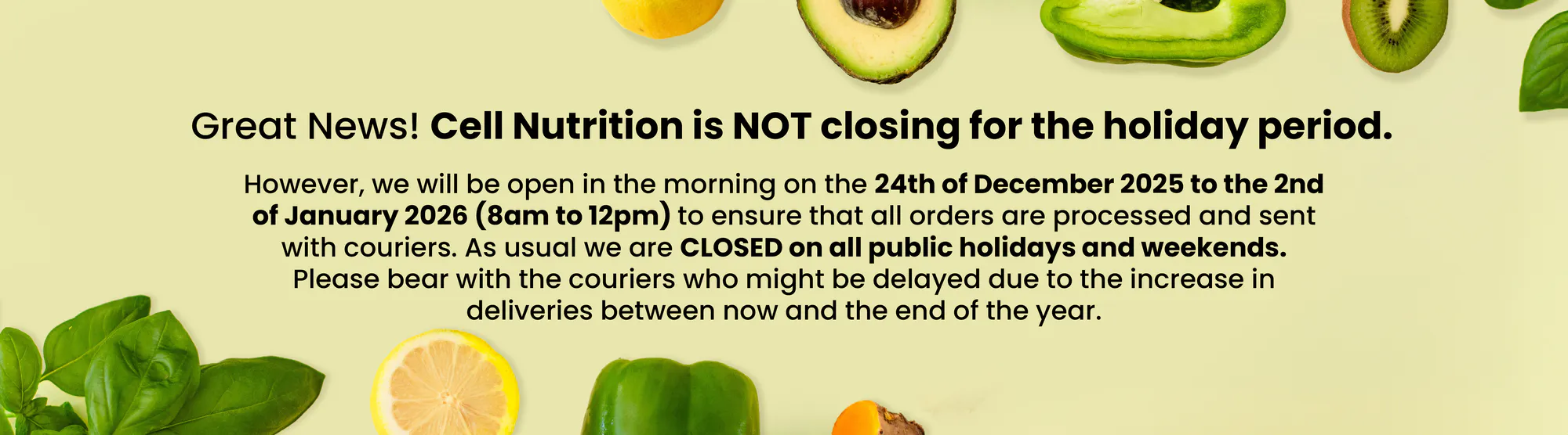Cell Nutrition are not medical professionals; we do not diagnose or give medical advice. We only warrant that our products are 100% natural and non toxic. The majority of the products that we distribute are registered with SAHPRA as Schedule 0 (nutritional supplements) which in accordance with SAHPRA is available for open sale in non-pharmacy and non-SAHPRA registered retail stores. We do not advocate that anybody ceases taking medication prescribed to them by their Doctors until they are advised by their GP or choose to by themselves. These statements have not been evaluated by the Food and Drug Administration / SAHPRA and these materials and products are not intended to diagnose, treat, cure or prevent any disease.