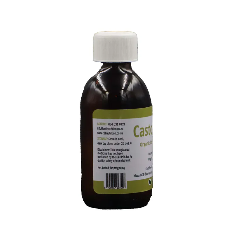 Cell Nutrition Organic Cold Pressed Castor Oil is a pure oil supplied in a 200ml container.