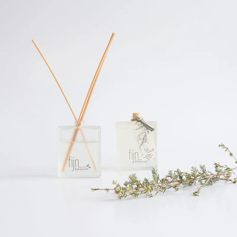 An aromatically calming scented liquid made from Cape Fynbos Essential Oils. This precious liquid can be used as a body fragrance, in candle burners or as an ultrasonic diffuser oil. It is effective as a stick diffuser in small spaces and contains no synthetic fragrances or chemical scent enhancers.