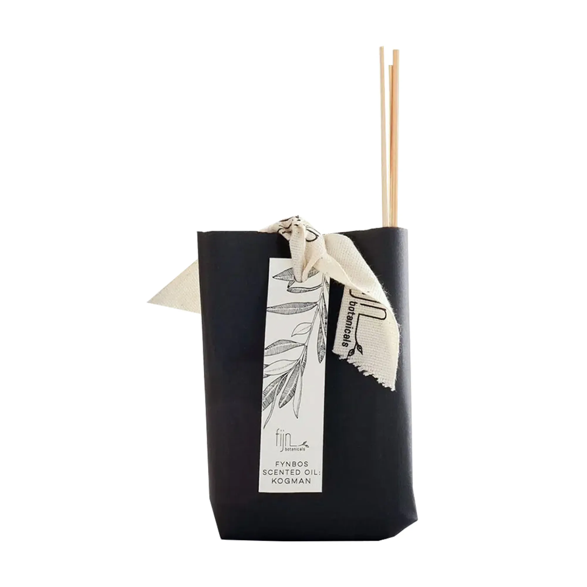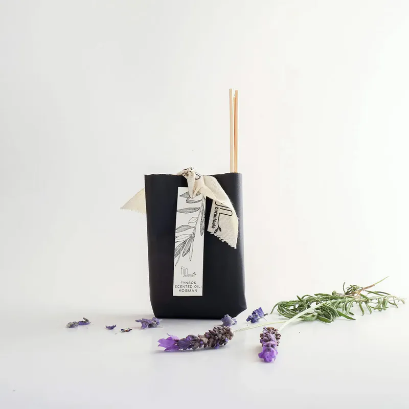 An aromatically soothing scented liquid made from Cape Fynbos Essential Oils. This precious liquid can be used as a body fragrance, in candle burners or as an ultrasonic diffuser oil. It is effective as a stick diffuser in small spaces and contains no synthetic fragrances or chemical scent enhancer. Contains essential oils of Lavender, Rose Geranium, Buchu and Cape May.