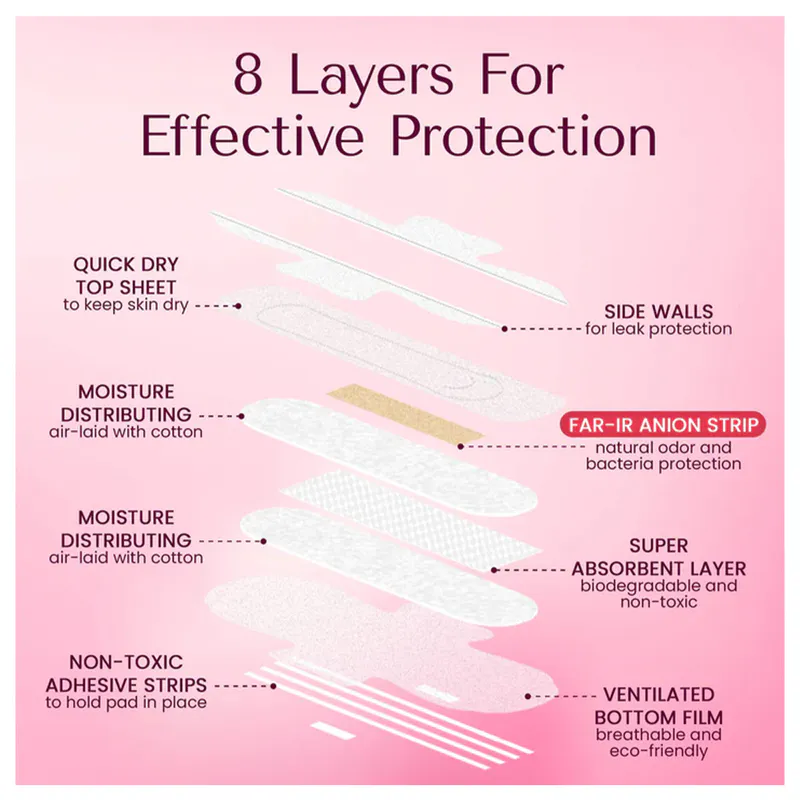 Crafted from 100% eco-certified materials, GENTLE DAY® pads provide natural protection that's gentle on your skin and the environment. With the added benefit of FAR-IR Anion Strip, you can experience reduced discomfort during your period.