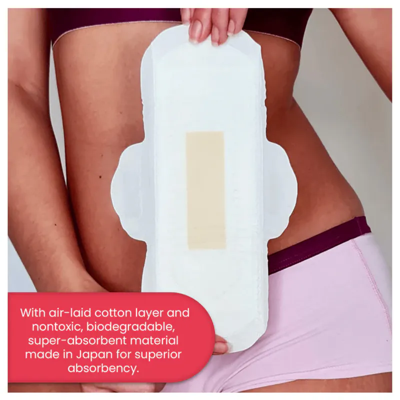 Our pads absorb up to 10x more than other "regular flow" pads on the market, meaning you can go about your day with confidence and without worrying about leaks.