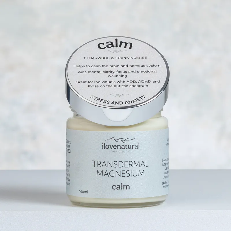ilovenatural Transdermal Magnesium Cream Calm is a skin-applied magnesium supplement supplied in a 100ml container.