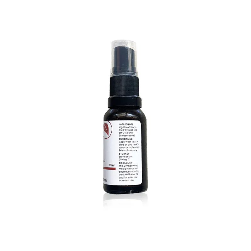 Highly concentrated Kigelia Africana plant extract (20ml) for various soothing topical applications.