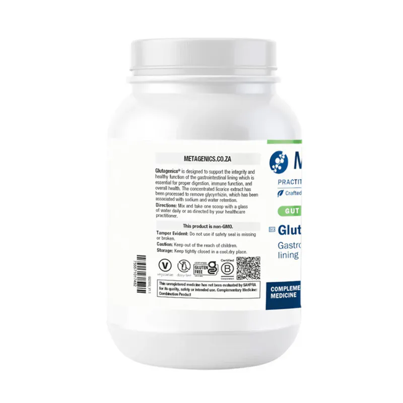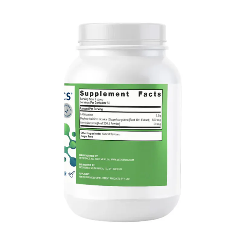 Powder formula (250g) featuring L-Glutamine and targeted botanicals to support the integrity of the digestive lining and gut barrier function.