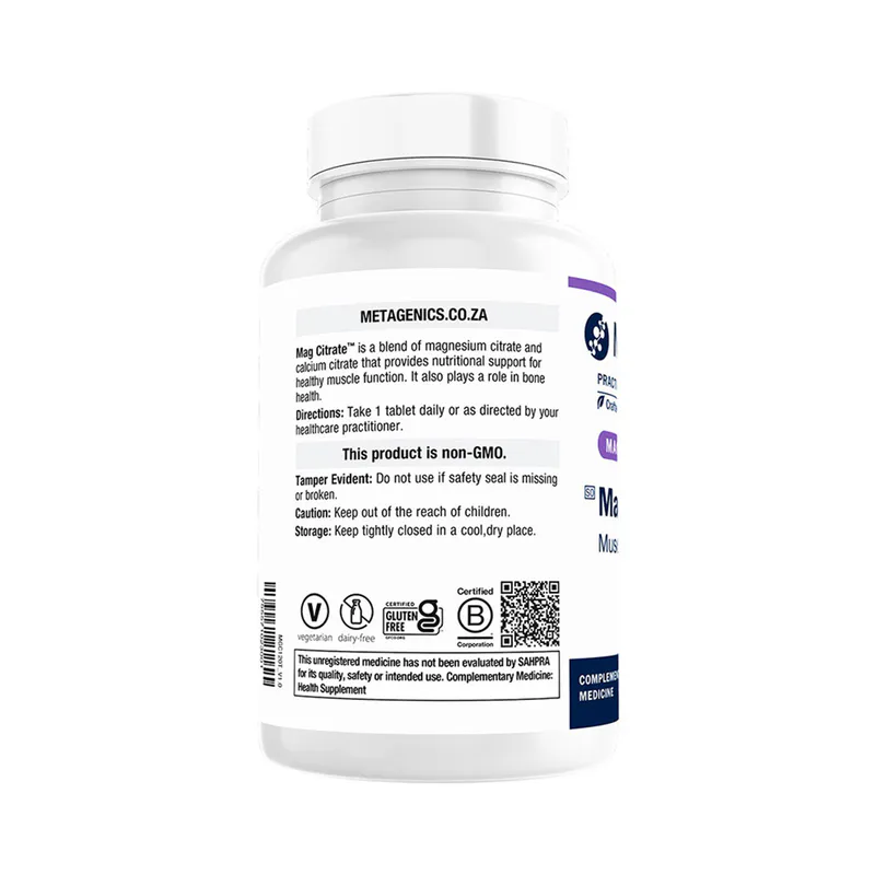 Mag Citrate™ is a blend of magnesium citrate and calcium citrate that provides nutritional support for healthy muscle function.* Magnesium is a cofactor in many enzymatic reactions. It also plays a role in bone health.*