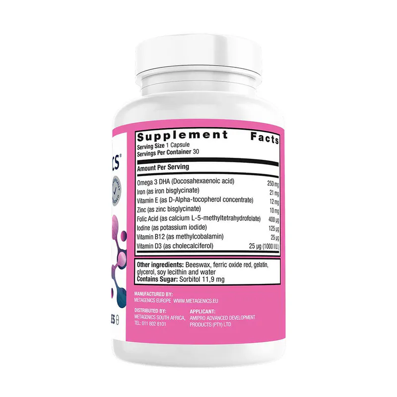 Comprehensive prenatal multivitamin formula (30 Capsules) providing essential nutrients to support mother and baby during pregnancy.