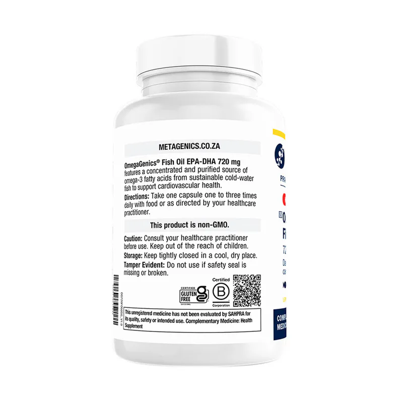 OmegaGenics® Fish Oil EPA-DHA 720 mg provides fresh, high-purity, potent fish oil from fisheries that observe best practices for protecting species and the ocean environment. Every batch is rigorously tested for over 450 contaminants, including heavy metals and toxins.