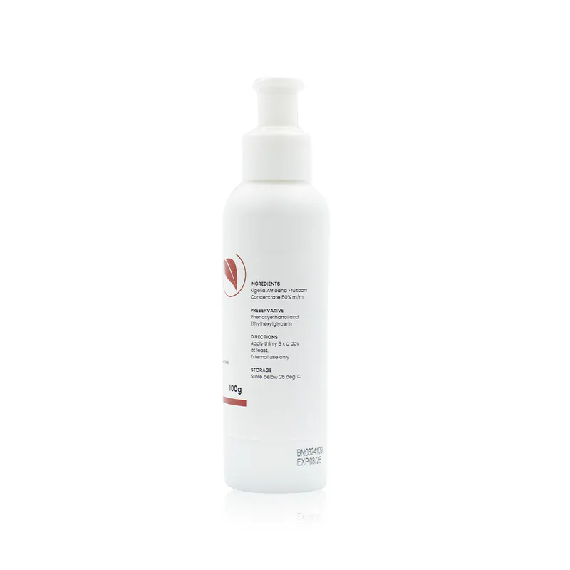 Topical gel (100g) containing Kigelia Africana for soothing skin application.