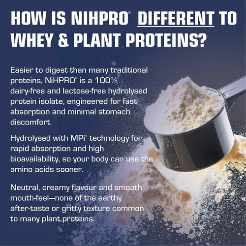 NiHPRO® has been extensively formulated, produced, and tested to be 100% free of all major protein allergens and is 100% lactose and sugar-free.