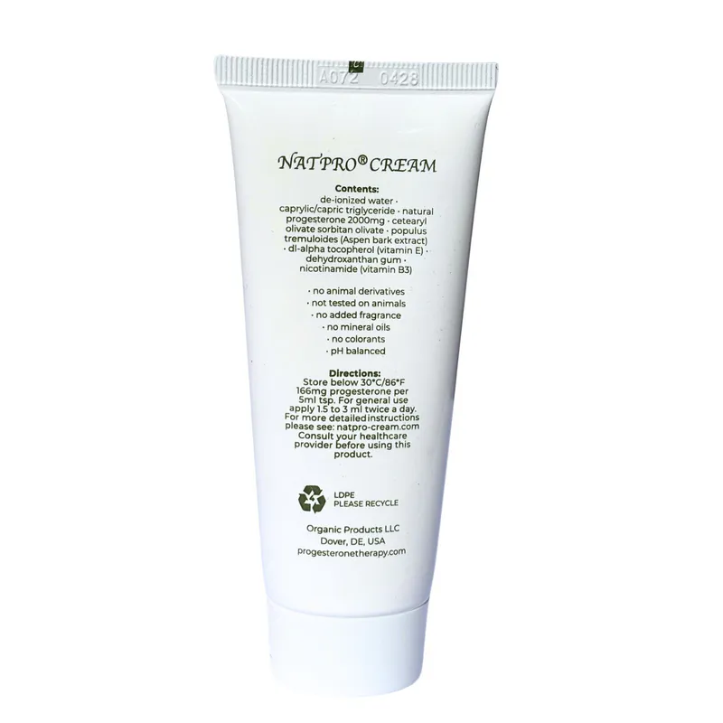 Only all natural plant based ingredients are used to create our bio-identical progesterone cream. Natpro is Paraben, PEG, Soy and GMO free.