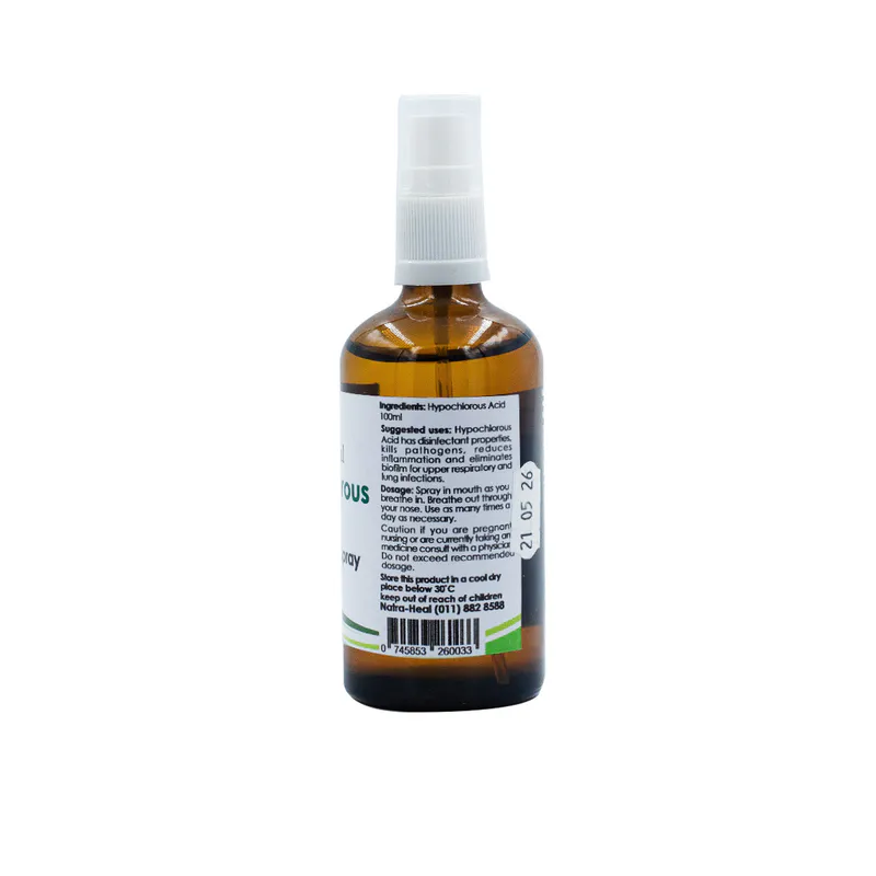 NatraHeal Hypochlorous Acid Nebulising Spray is a solution supplied in a 100 Millilitre bottle for respiratory support.