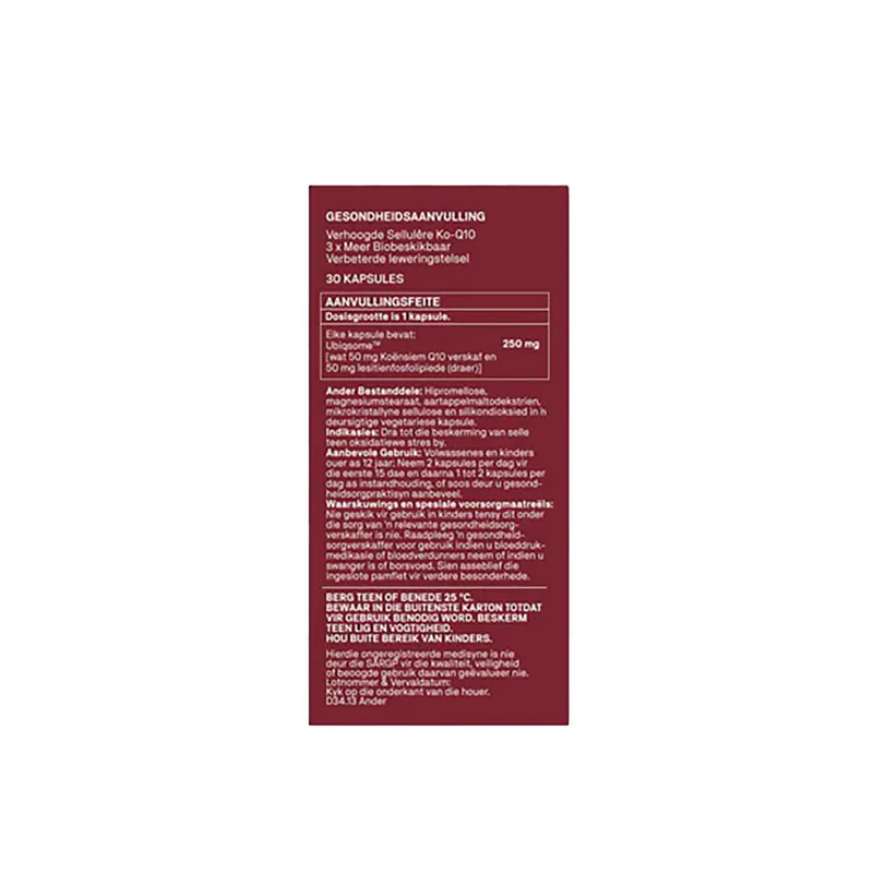 Highly bioavailable CoQ10 (250mg, 30 caps) formulated to support mitochondrial energy production and cardiovascular health.