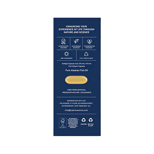 Natroceutics Omega 3 Pure & Wild is produced from sustainable, wild caught Alaskan pollock. Each batch is tested for absolute purity free from heavy metals and contaminants with a market leading TOTOX score of a maximum of 5 at encapsulation. Our omega 3 fatty acids are in a triglyceride form as nature intended, delivering 400mg of EPA (Eicosapentaenoic acid) and 300mg of DHA (Docosahexaenoic acid) per capsule. Natroceutics delivers an omega 3 for those who expect the best and do not wish to compromise on quality.
