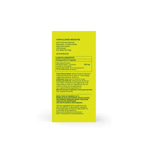 | Rhodiola rosea L. (rhodiola) [root; 3-7:1 extract standardised to contain 5 % rosavins and 1,8 % salidroside] | 320 mg |