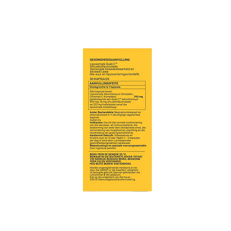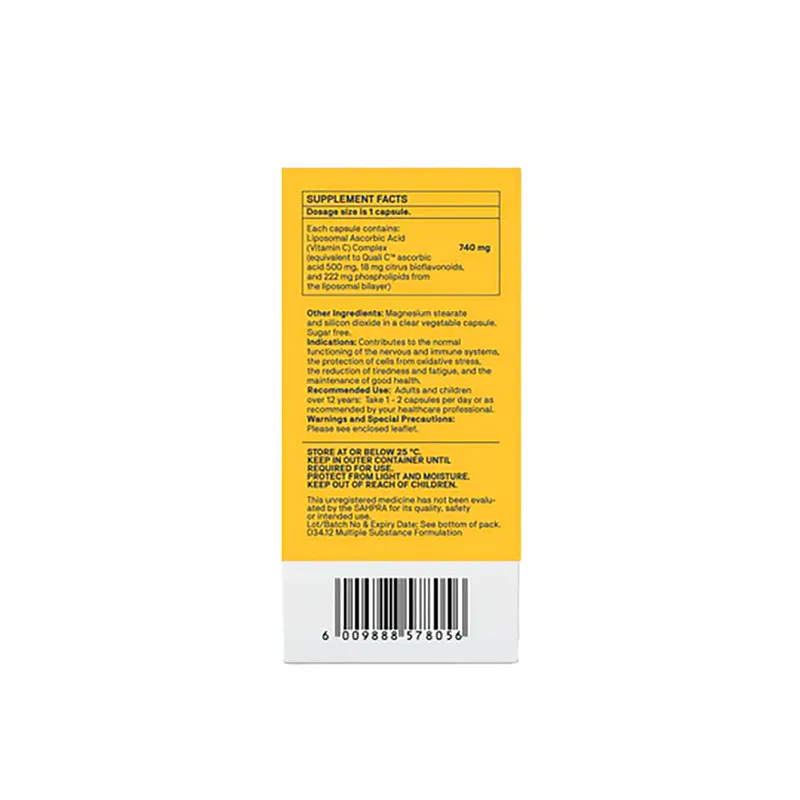 - Liposomal Ascorbic acid (vitamin C) Complex (mg): 740(equivalent to Quali CTM Ascorbic acid 500 mg, 18 mg citrus bioflavonoids and 222 mg phospholipids from the liposomal bilayer.