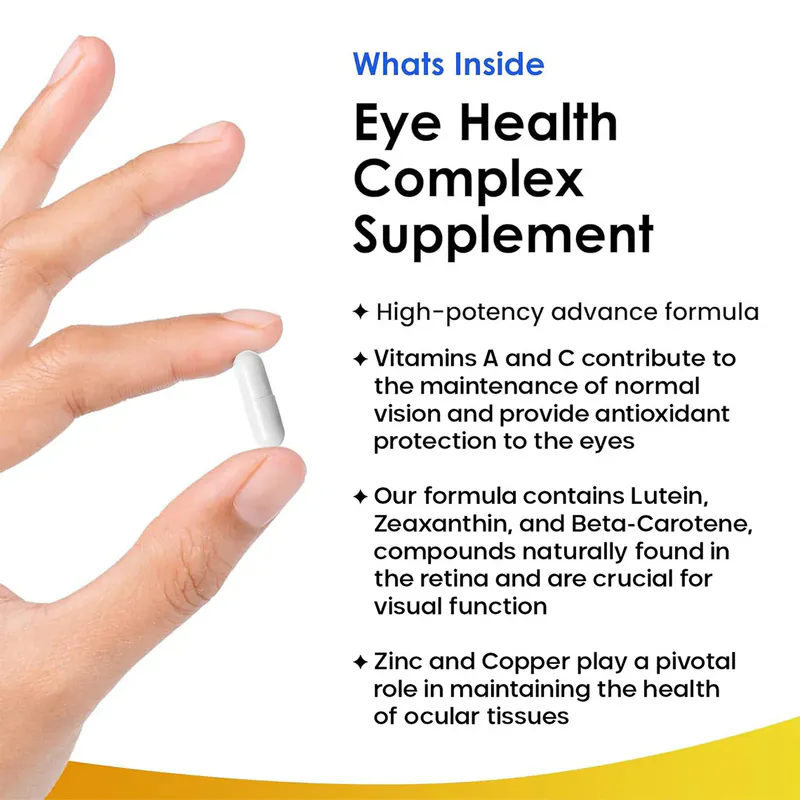 - Eye Health Complex Vitamin A, B2, Zinc, Lutein Zeaxanthin Supplement Capsules.