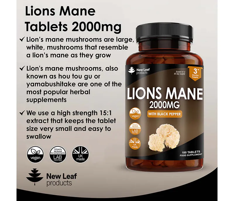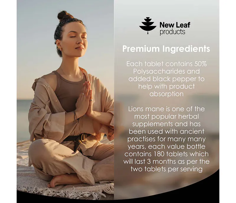 New Leaf Lions Mane 2000mg 180 Tablets 3 Month Supply