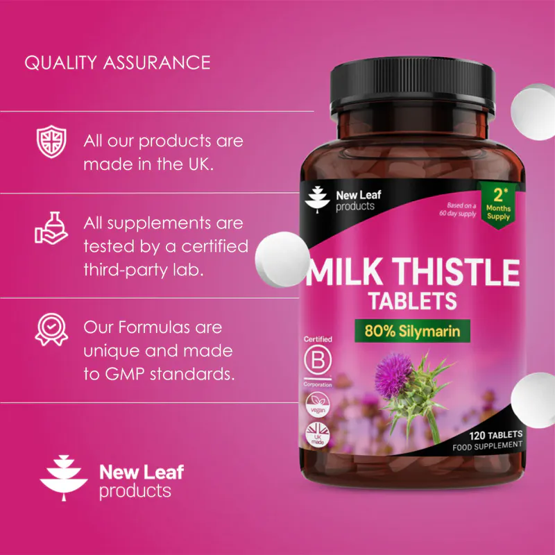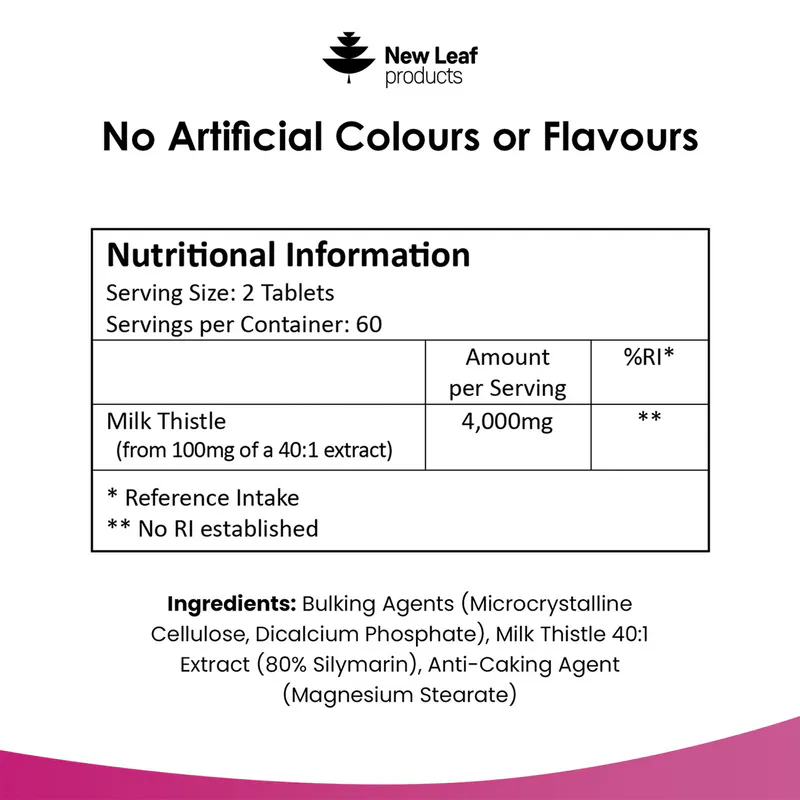New Leaf Milk Thistle is a botanical liver support supplement supplied as 120 Tablets (2 Month Supply).