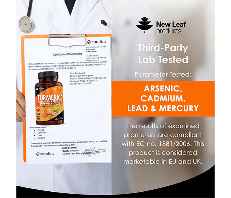 - Each tablet contains 2000 mg of Turmeric, Ginger & Black Pepper