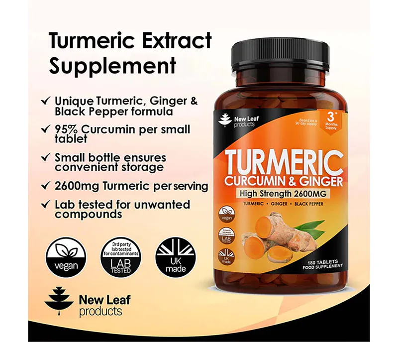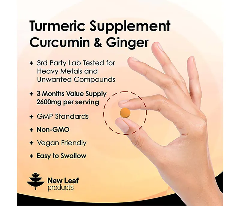 New Leaf Turmeric Curcumin Ginger 180 Tablets 3 Month Supply