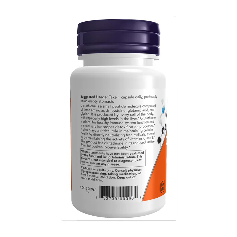 Glutathione is a small peptide molecule composed of three amino acids: cysteine, glutamic acid, and glycine. It is produced by every cell of the body, with especially high levels in the liver.* Glutathione is critical for healthy immune system function and is necessary for proper detoxification processes.* It also plays a critical role in maintaining cellular health by directly neutralizing free radicals, as well as by maintaining the activity of vitamins C and E.* This product has glutathione in its reduced, active form for optimal bioavailability.*