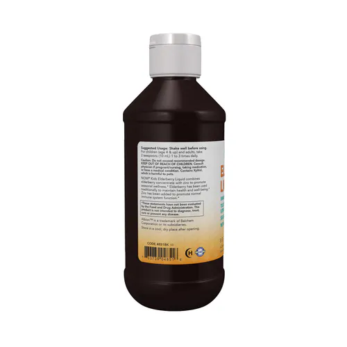 NOW® Kids Elderberry Liquid combines elderberry concentrate with zinc to promote seasonal wellness.* Elderberry has been used traditionally to maintain health and well-being.* Zinc has been added to promote normal immune system function.*
