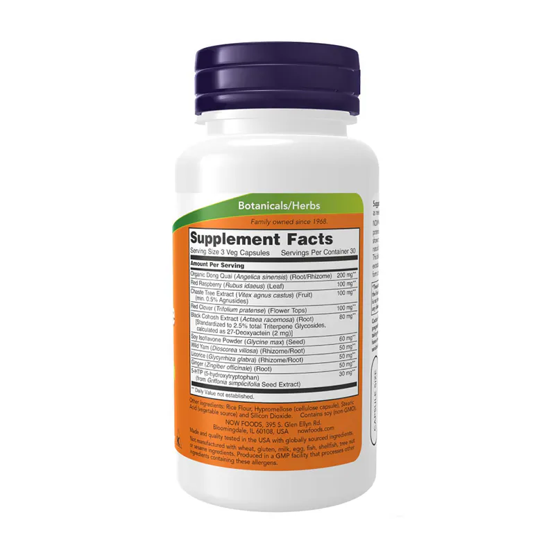 NOW Foods Menopause Support is a comprehensive botanical blend supplied as 90 Veg Capsules, formulated to ease common menopausal discomforts.