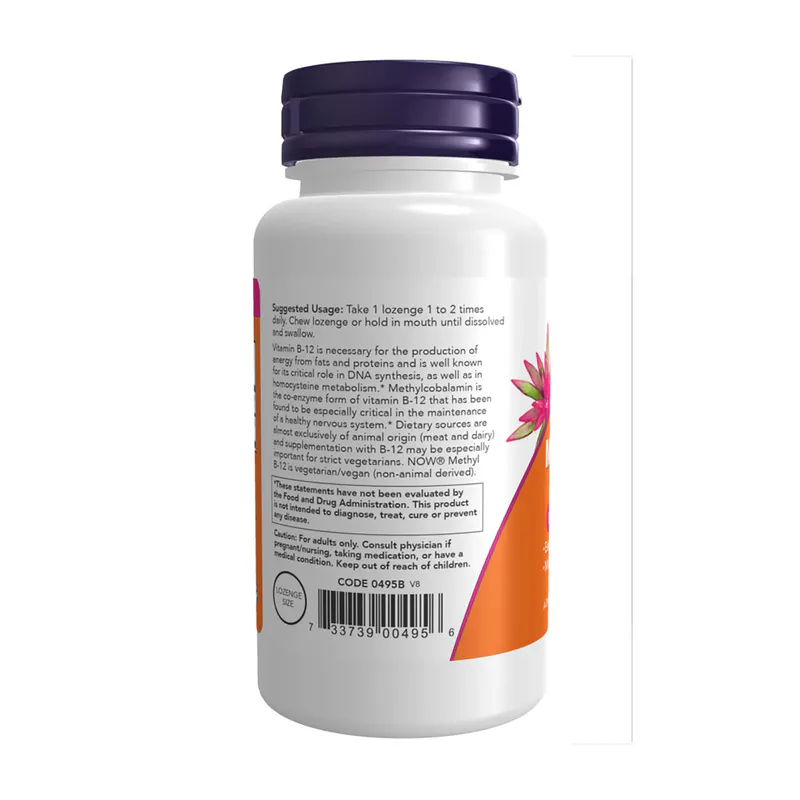 Vitamin B-12 is necessary for the production of energy from fats and proteins and is well known for its critical role in DNA synthesis, as well as in homocysteine metabolism.* Methylcobalamin is the co-enzyme form of vitamin B-12 that has been found to be especially critical in the maintenance of a healthy nervous system.* Dietary sources are almost exclusively of animal origin (meat and dairy) and supplementation with B-12 may be especially important for strict vegetarians. NOW® Methyl B-12 is vegetarian/vegan (non-animal derived).