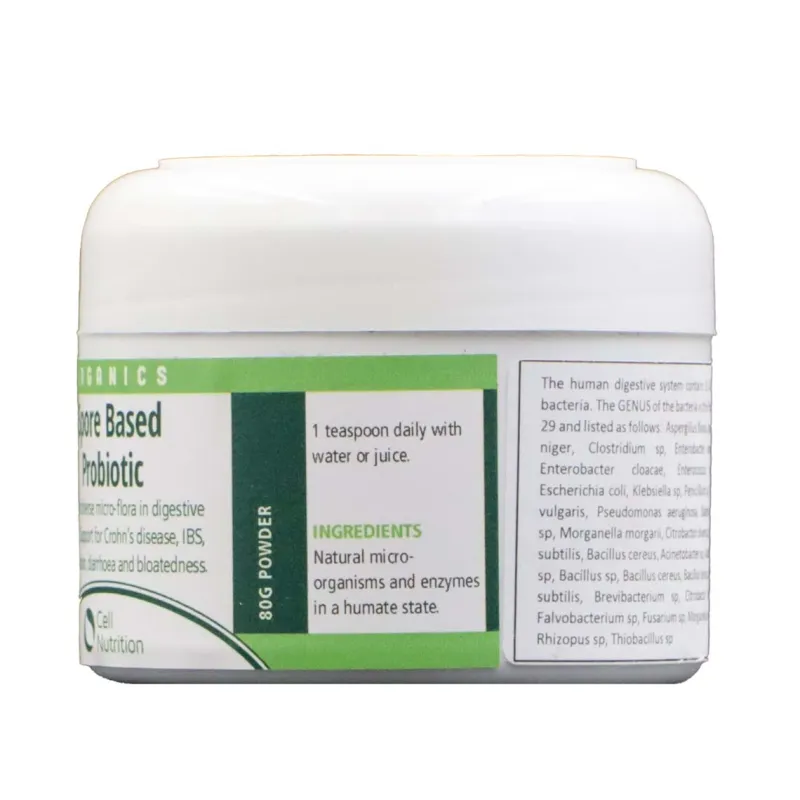 Organics Probiotic is a high-quality probiotic powder supplied in an 80g container for comprehensive gut support.