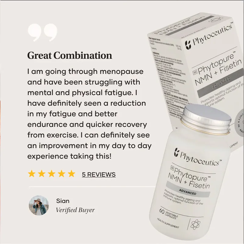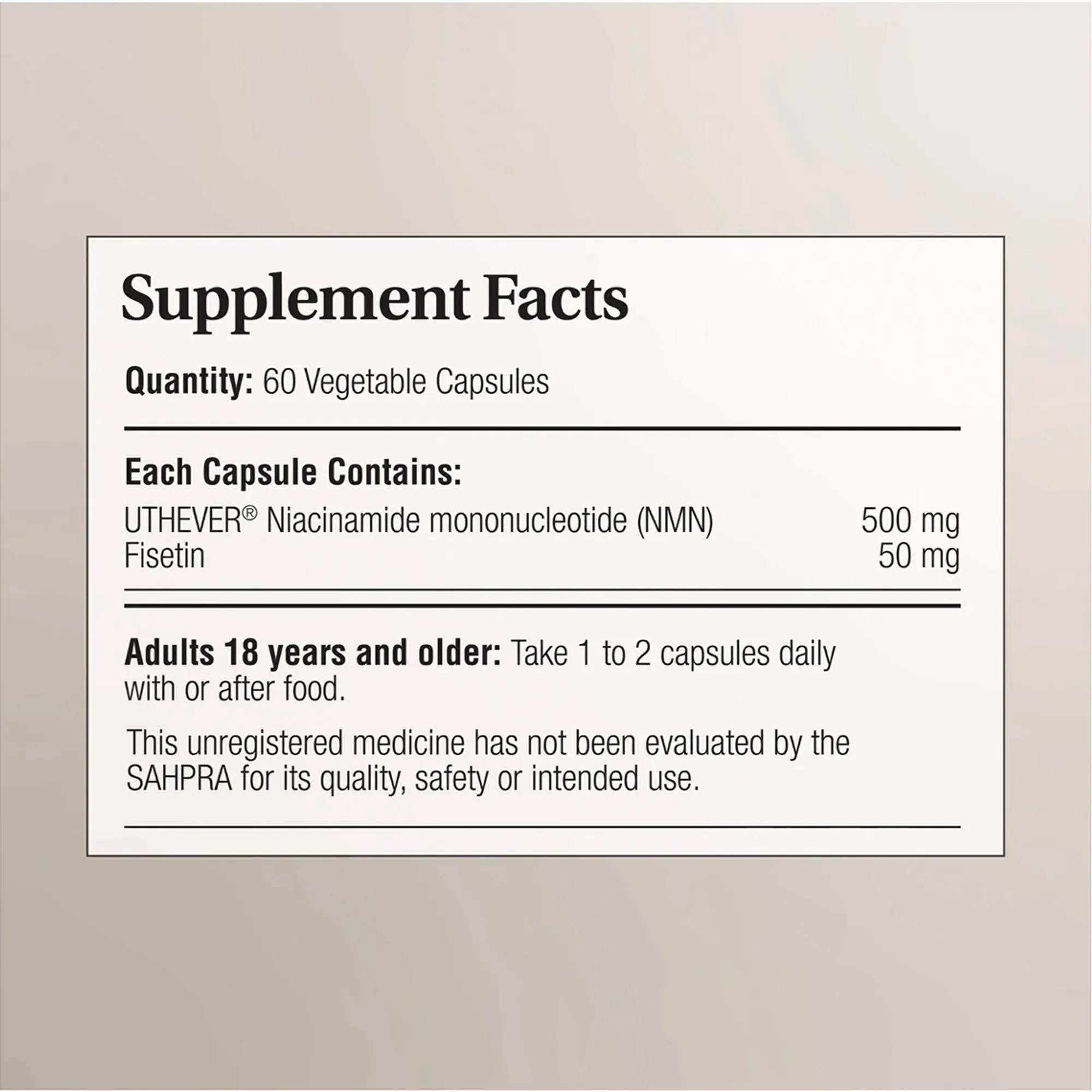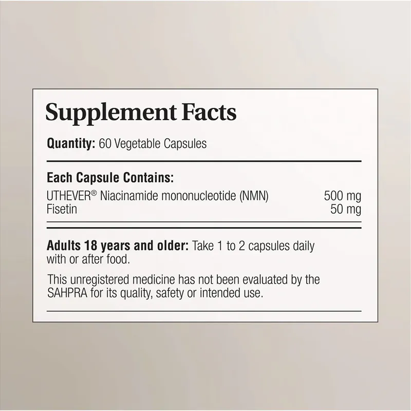 The addition of fisetin provides complementary benefits by acting as a potent senolytic, helping to eliminate senescent or 'zombie' cells that accumulate with age and contribute to inflammation and tissue damage. By targeting these dysfunctional cells, fisetin supports a healthier cellular environment and promotes healthy ageing. This advanced formulation is designed to work synergistically to support energy levels, cognitive function, immune health, and overall well-being.