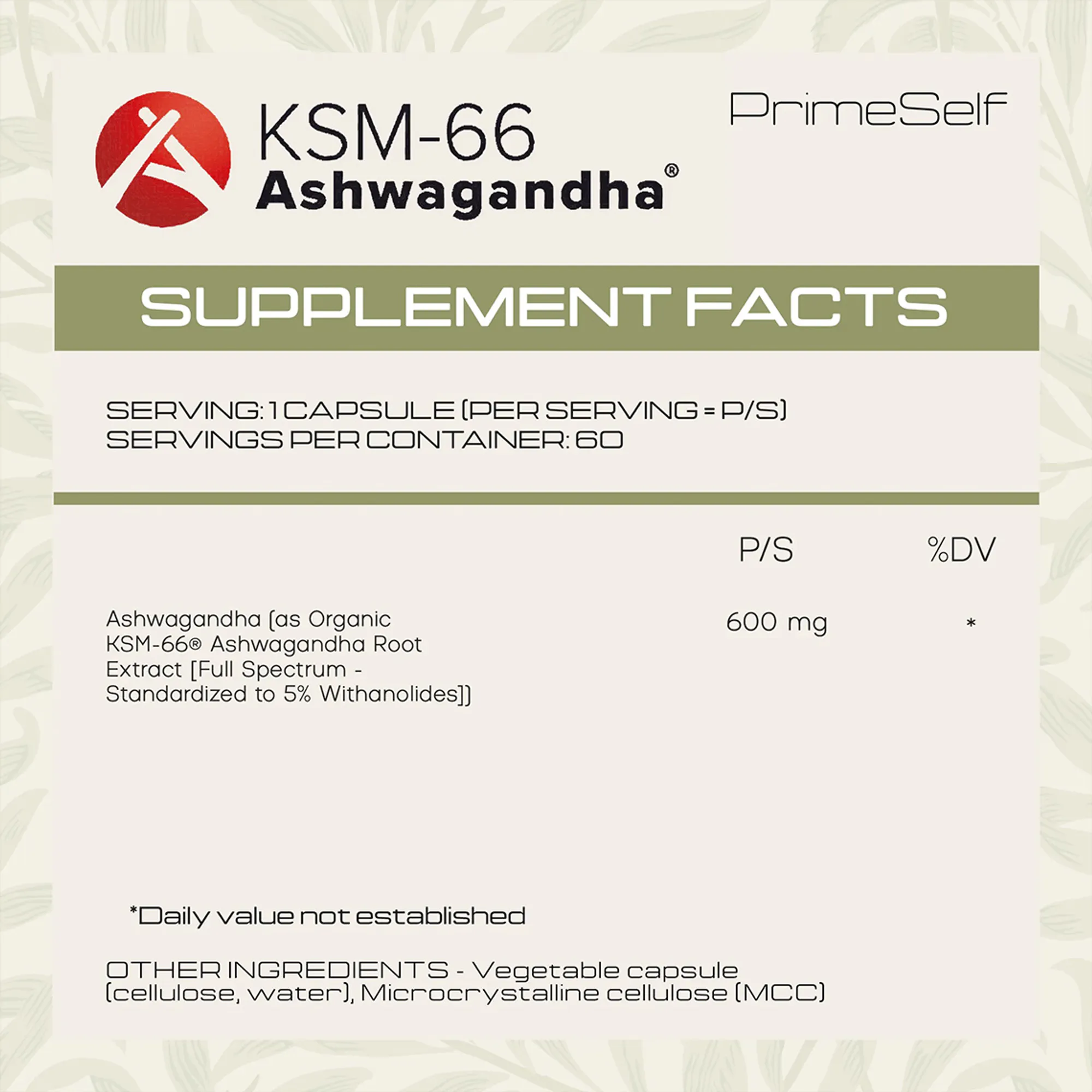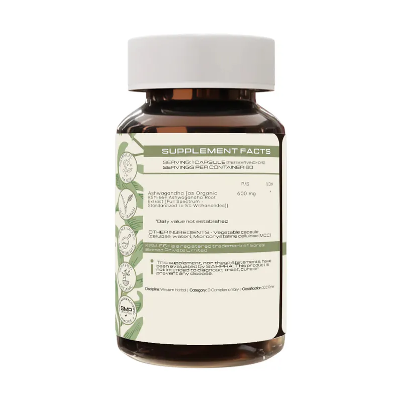- Active Ingredient: KSM-66® Organic Ashwagandha Root Extract (600mg)