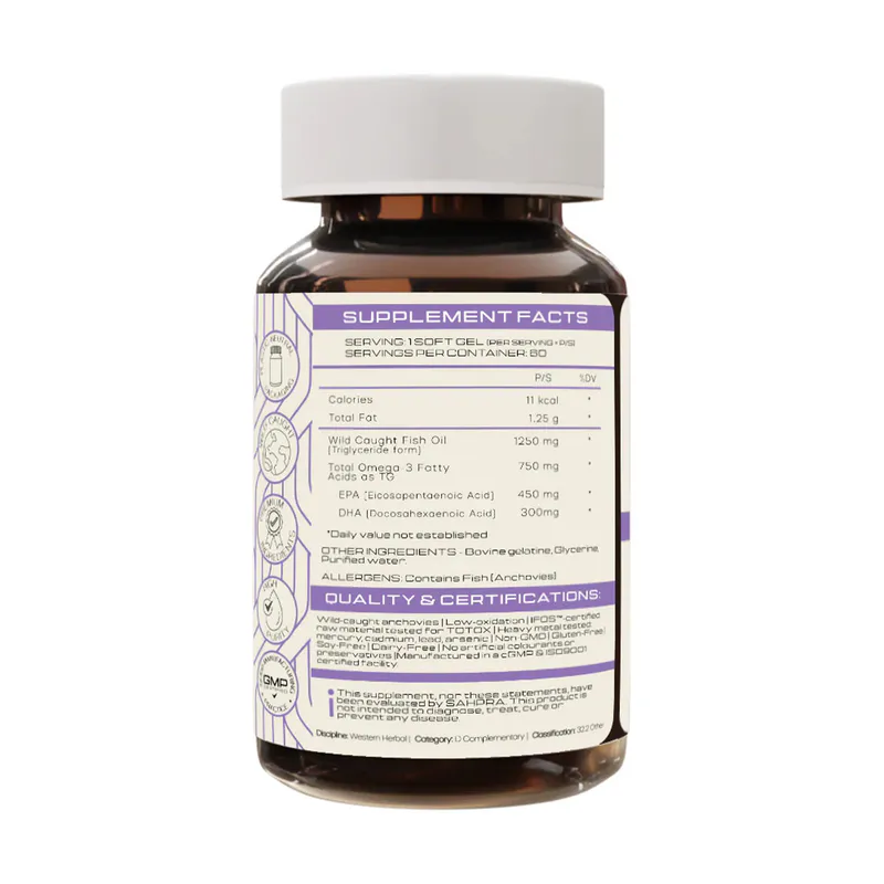 - Fish Oil (Triglyceride Form) - 1250 mg
