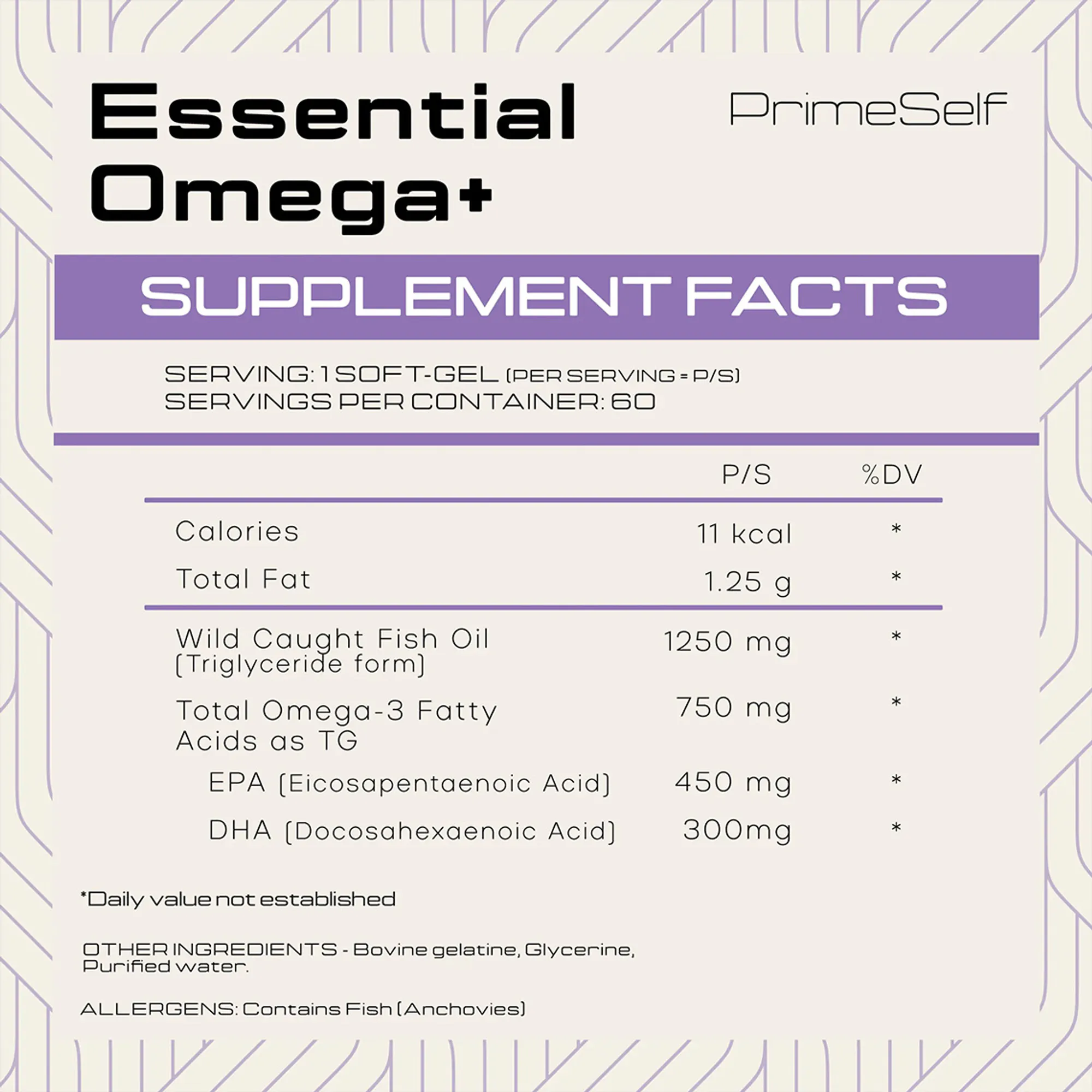 PrimeSelf Essential Omega Plus is an essential fatty acid supplement supplied as 60 Softgel Capsules.