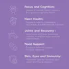 - Heart & Circulation - supports healthy cholesterol, blood flow, and cardiovascular function