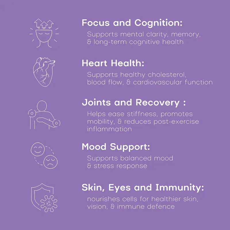 - Skin, Eyes & Immunity - nourishes cells for healthier skin, vision, and immune defence
