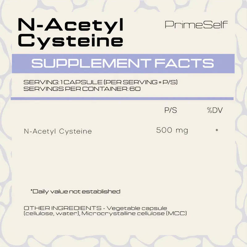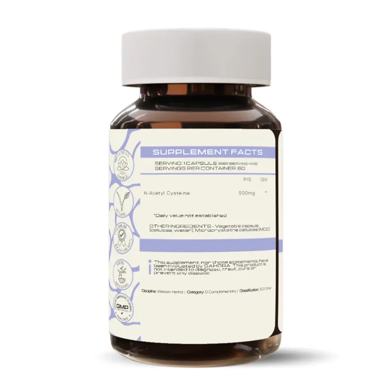 - Active Ingredient: N-Acetyl Cysteine (500mg)