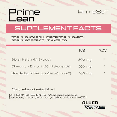 Why Choose Prime Lean: Vegan-friendly | ISO-certified | cGMP Compliant Serving Size: 2 capsules Servings Per Container: 30