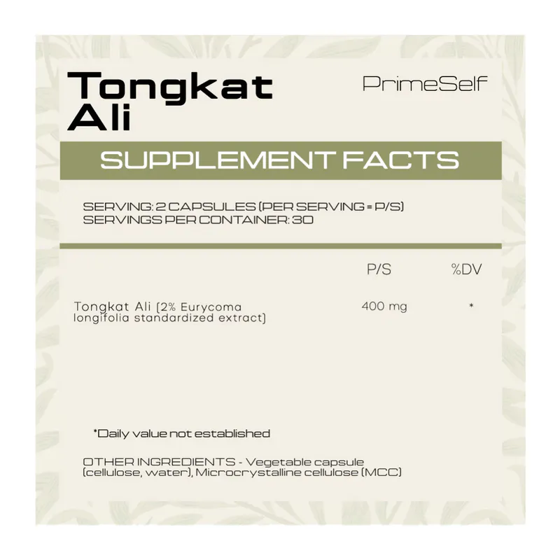 - Active Ingredient: Tongkat Ali (400mg, 2% Eurycomanone)