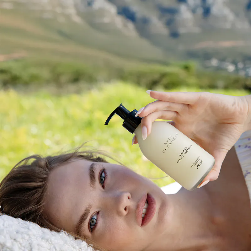 Skin Creamery’s Oil-Milk Cleanser & Makeup Remover organic Sesame Seed Oil and purifying botanicals Almond Oil and Baobab Oil Free from harsh sulfates and suitable for all skin types