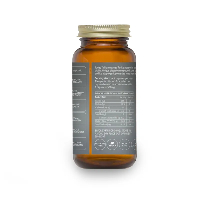 Turkey Tail is a functional mushroom with unique bioactive compounds that may improve the gut microbiome functioning for improved digestive health and strengthen immunity for resilience against infections. Its adaptogenic properties may also restore energy levels throughout the day for longer-lasting energy.