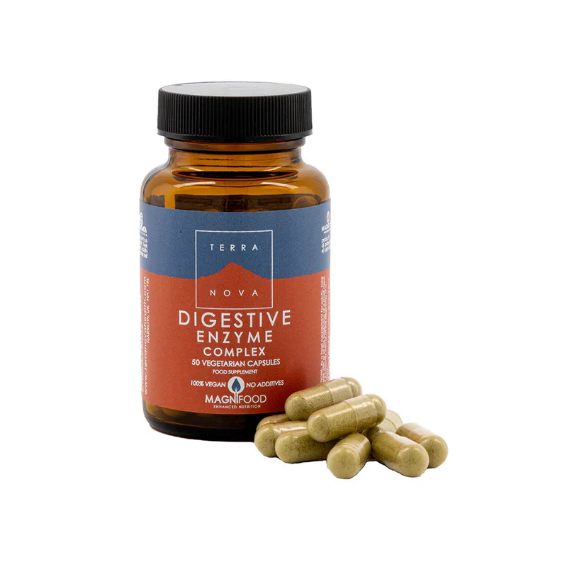 Terranova Digestive Enzyme Complex is a broad-spectrum blend supplied as 50 Capsules to support efficient digestion.